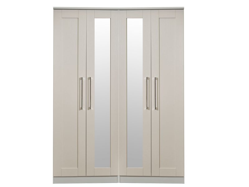 This tall 4 door wardrobe provides a large storage solution for any bedroom, comes with 2 full height extrnal mirrored doors.