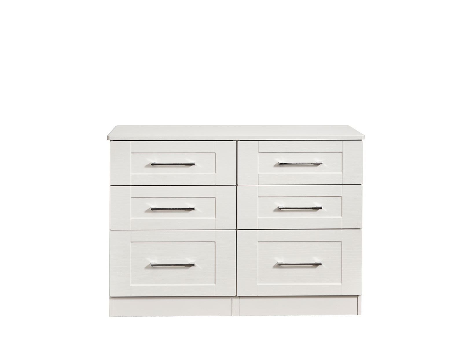 This double width 6 drawer chest of drawers is practical and stylish. Perfect for any home as a free standing storage unit.
