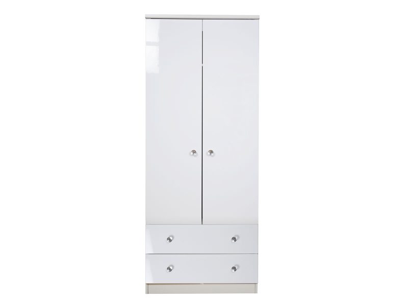 This tall double door wardrobe is perfect for any bedroom. Features the added practicality of 2 full width drawers.