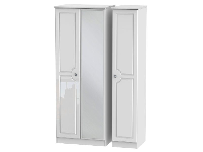 This tall triple 3 door wardrobeis perfect for any bedroom when a normal wardrobe is just not large enough. Also features a full height single mirrored door.