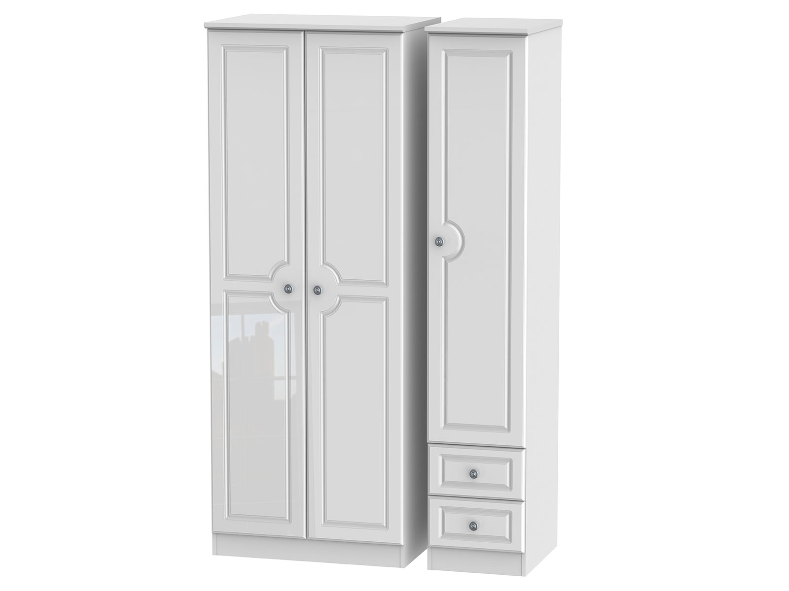 Welcome Furniture Pembroke Gloss Tall Triple Plain & Drawer Wardrobe