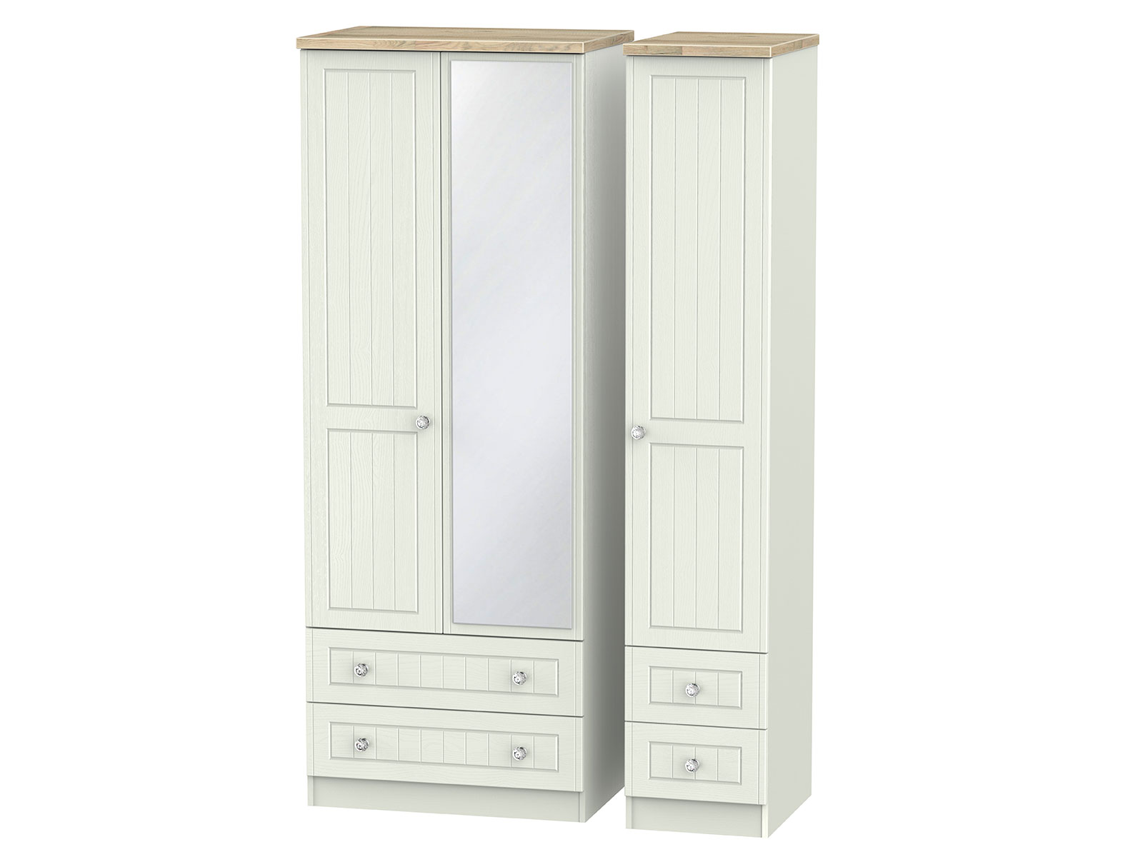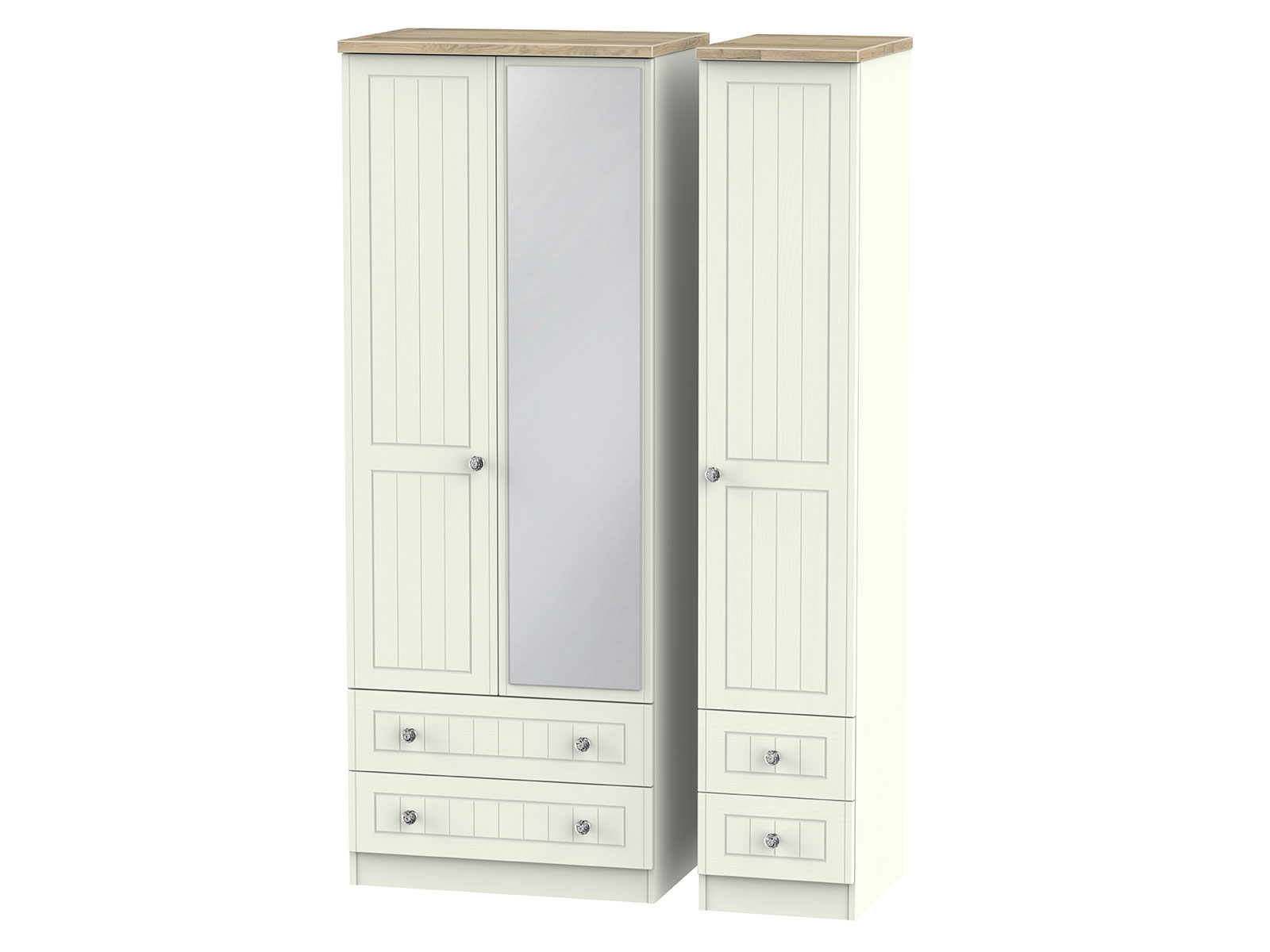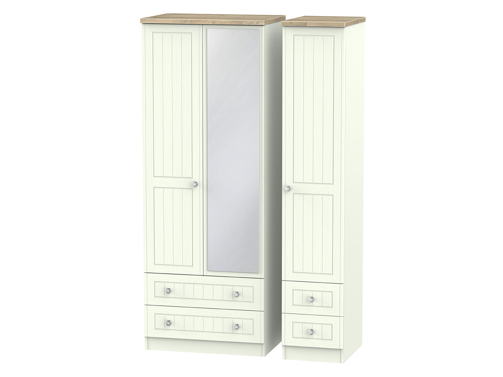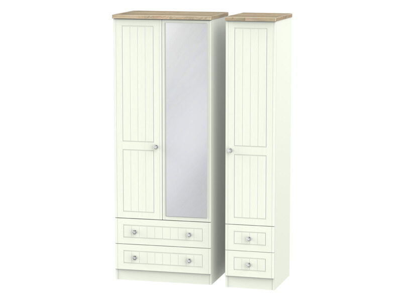 This tall triple 3 door wardrobeis perfect for any bedroom when a normal wardrobe is just not large enough. Also features 2 narrow and 2 wide storage drawers for added practicality.
