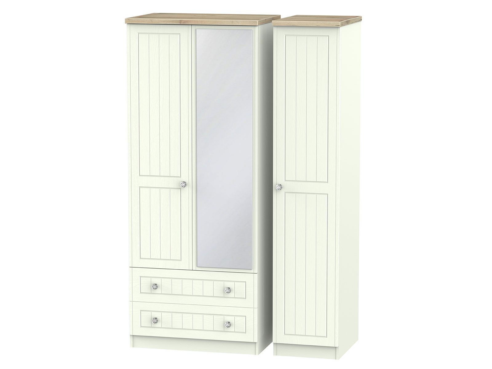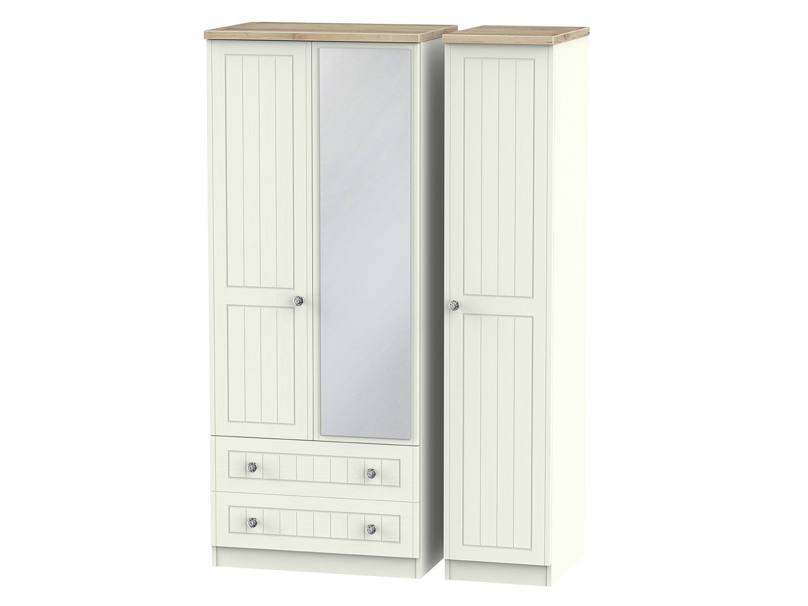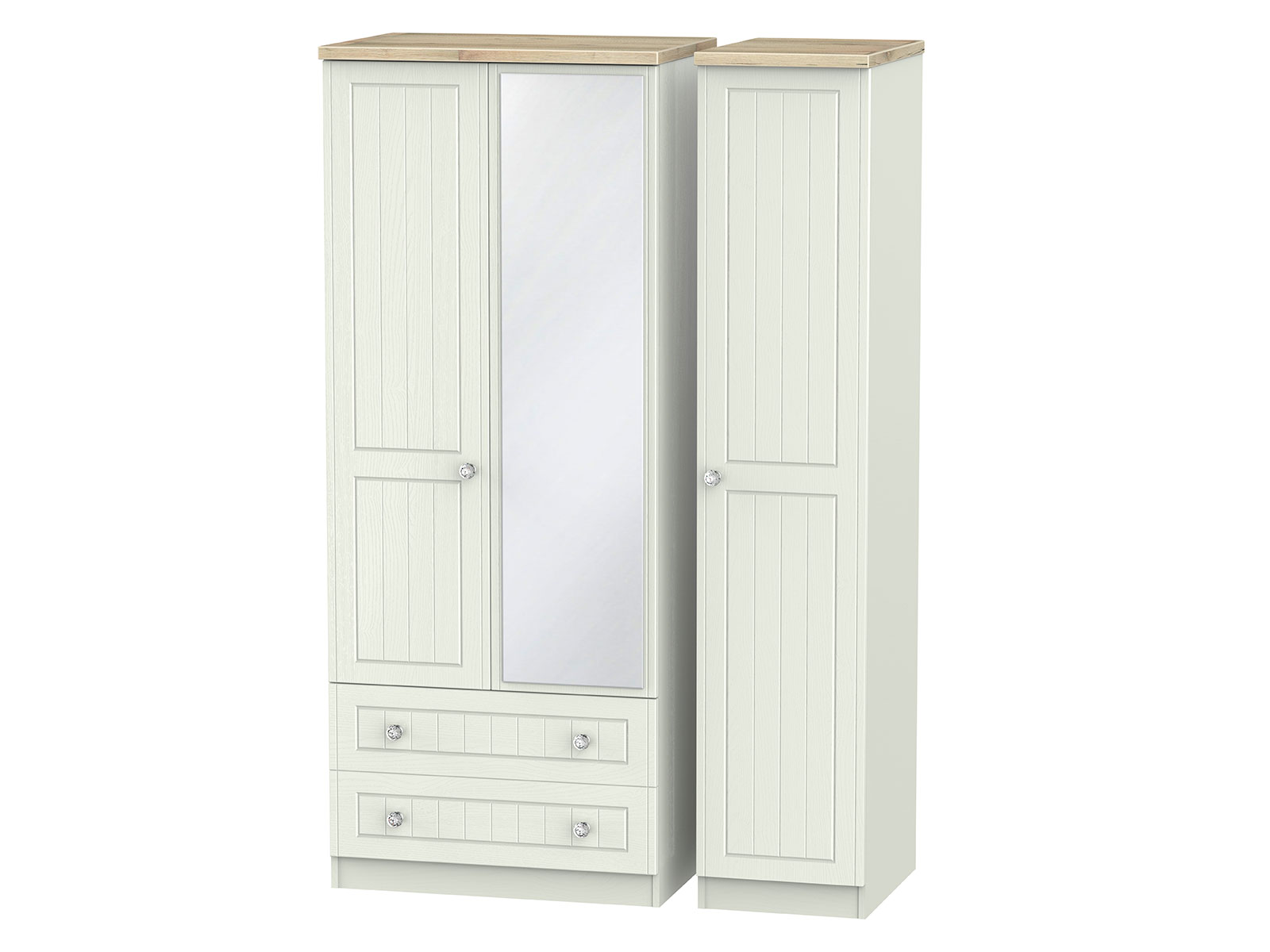 This full height triple 3 door wardrobeis perfect for any bedroom when a normal wardrobe is just not large enough. Also features 2 wide storage drawers for added practicality and a single mirrored door.