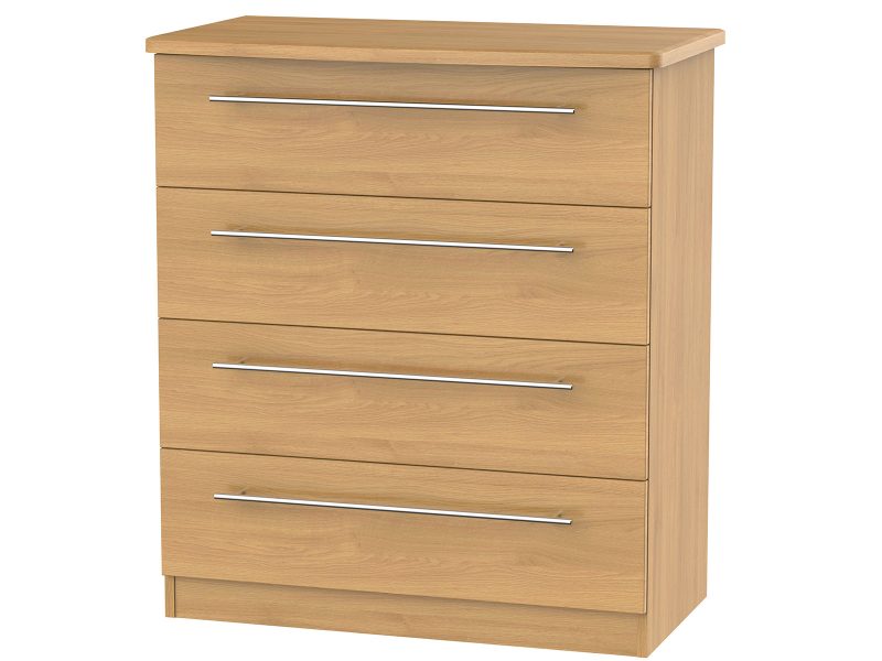 This wide 4 drawer chest of drawers is practical and stylish. Perfect for any home as a free standing storage unit.