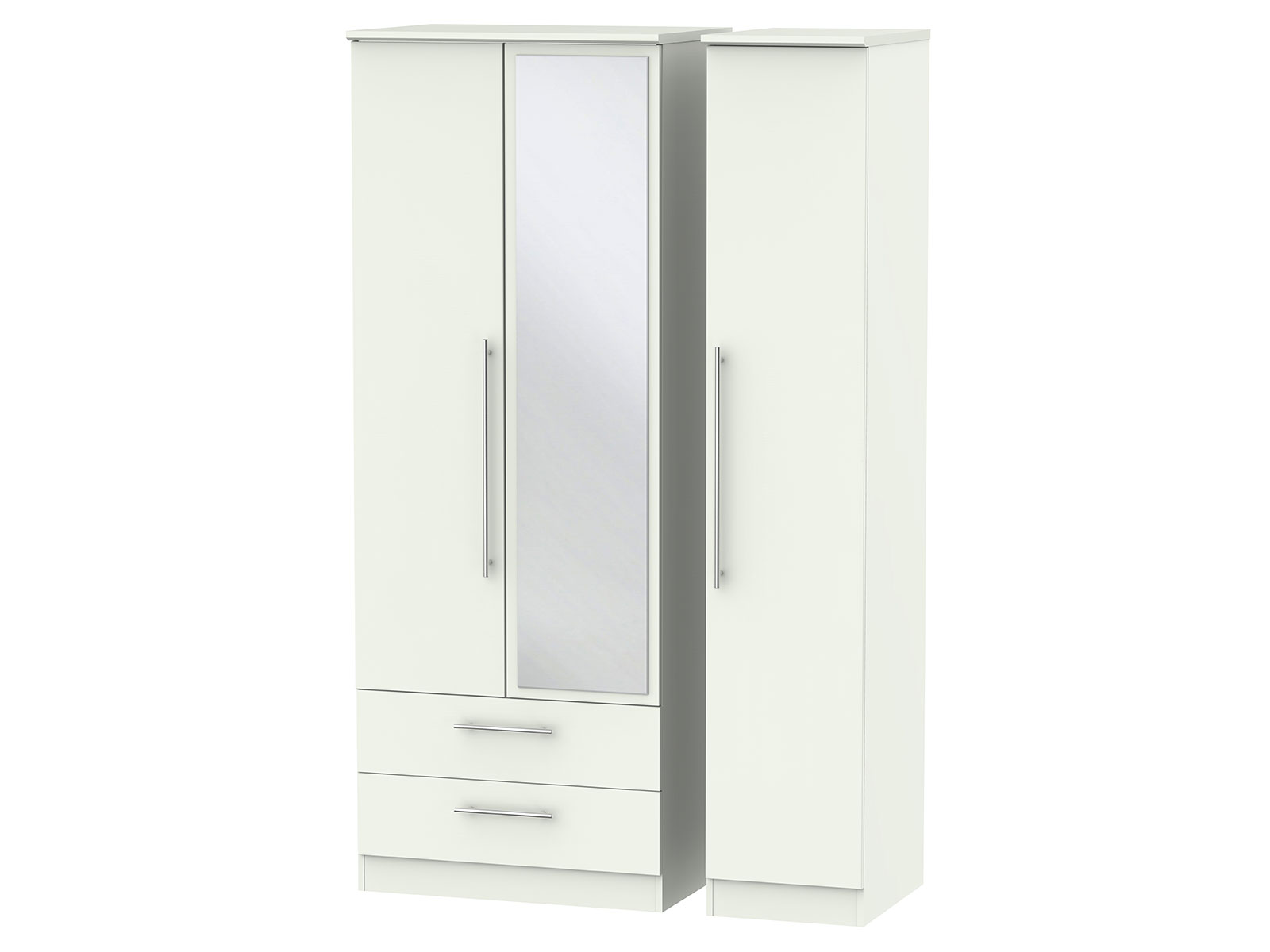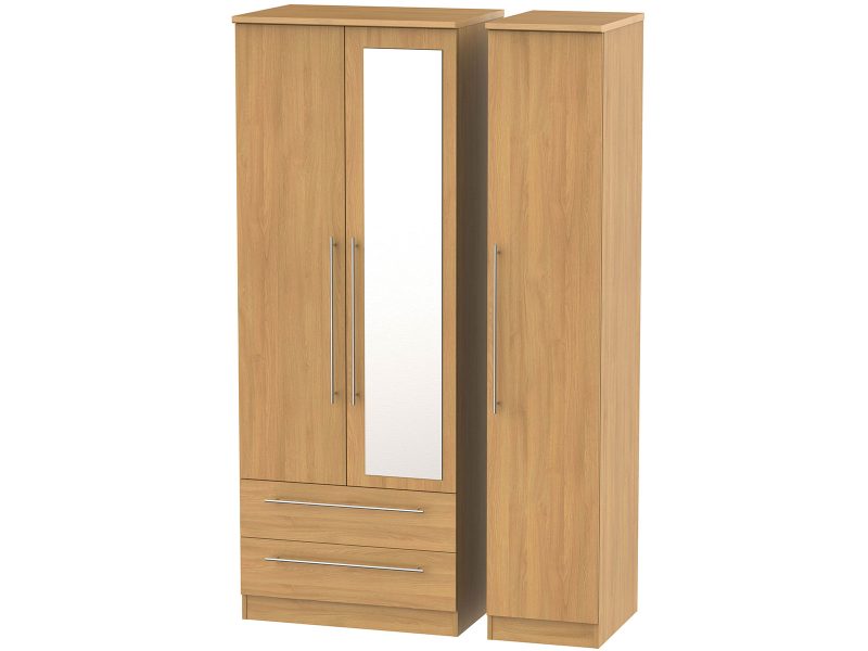 This tall triple 3 door wardrobeis perfect for any bedroom when a normal wardrobe is just not large enough. Also features 2 wide storage drawers for added practicality and a single mirrored door.